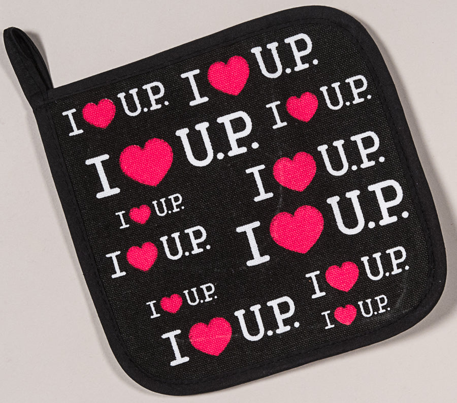 This bundle has it all: U.P. Buffalo plaid ball cap; mug and shot glass with U.P. plaid design; two magnets; two keychains; and a U.P. design pot holder.